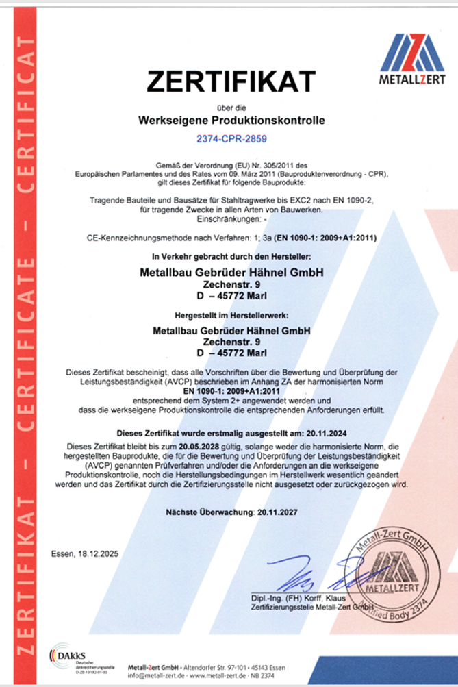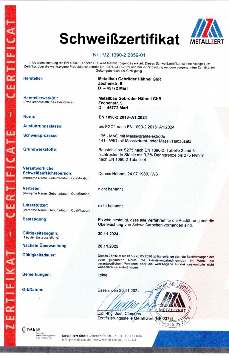 Schweißzertifikat DIN EN 1090-2